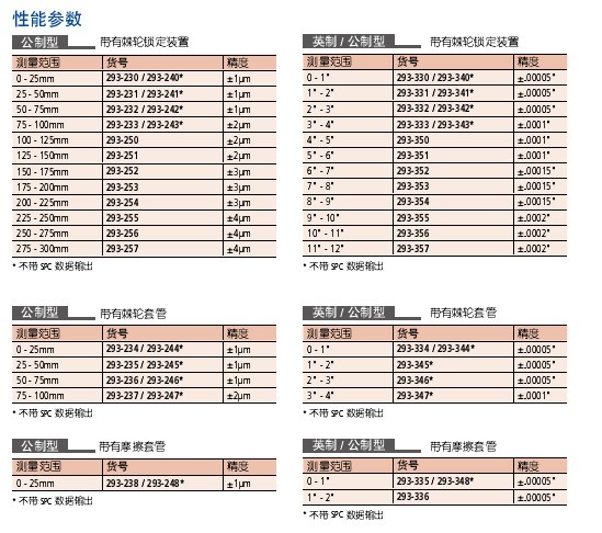 平行度:測量范圍小于50mm型為1μm