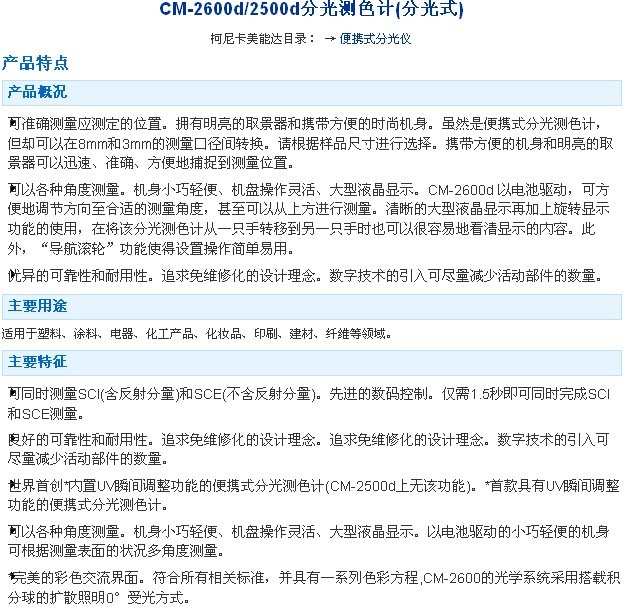 CM-2600d/2500d分光光測色計(分光式)