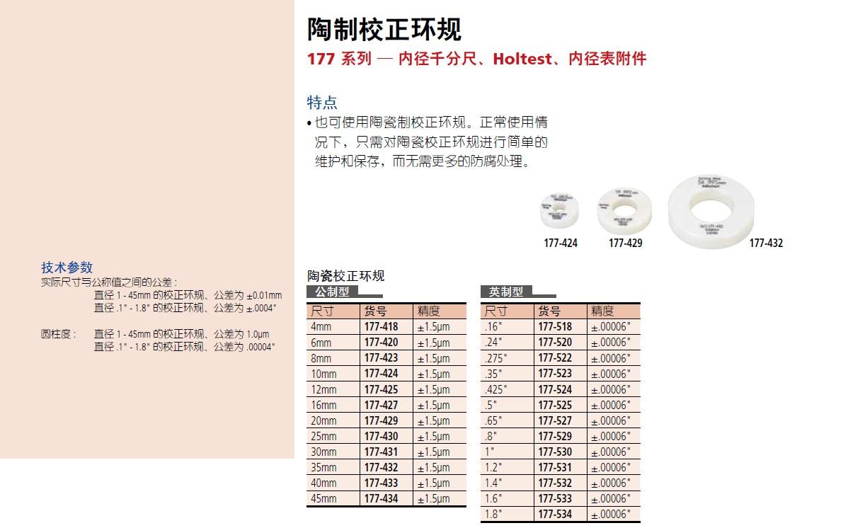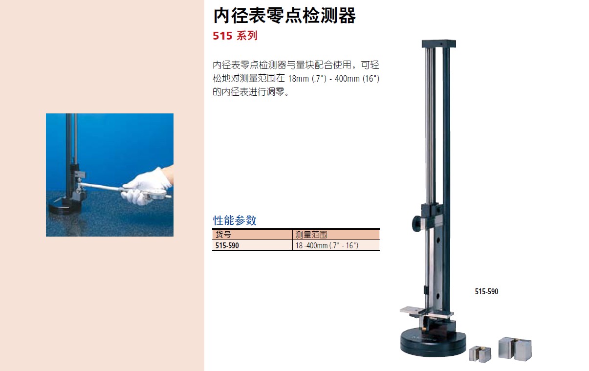 內(nèi)徑表零點(diǎn)檢測(cè)器與量塊配合使用,可輕 松地對(duì)測(cè)量范圍在 18mm (.7") - 400mm (16")