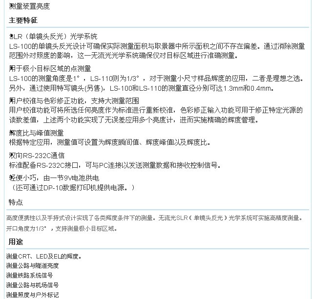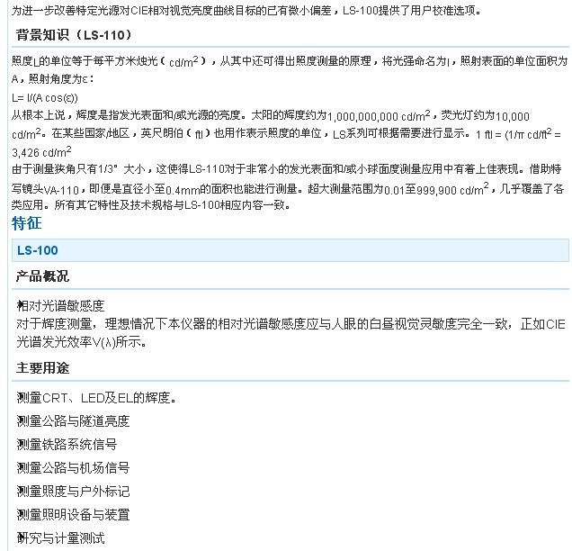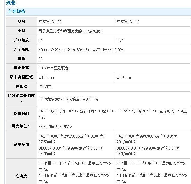 LS-100/LS-110亮度計