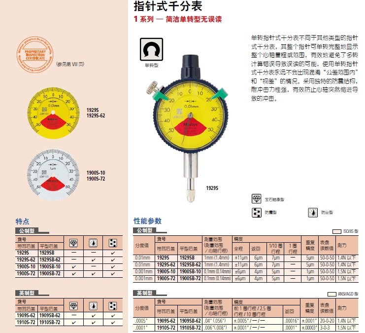 三豐指針式千分表1929S