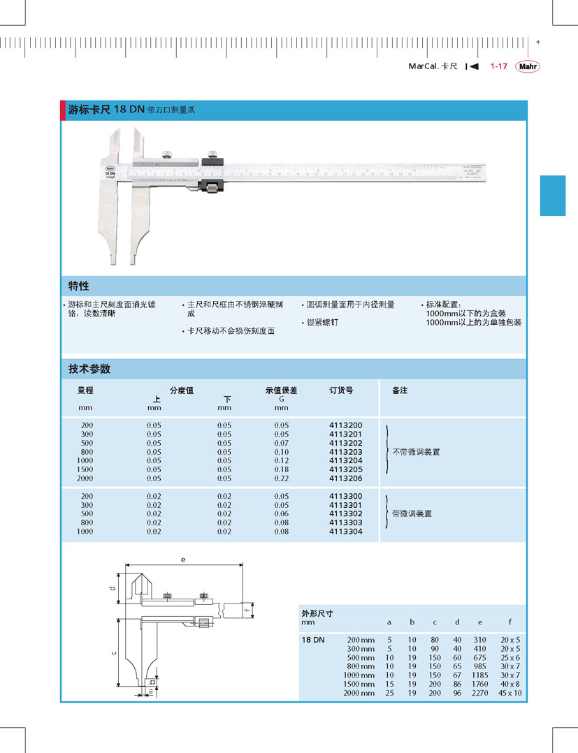 德國馬爾游標(biāo)卡尺18DN帶刀口測量爪0-2000mm