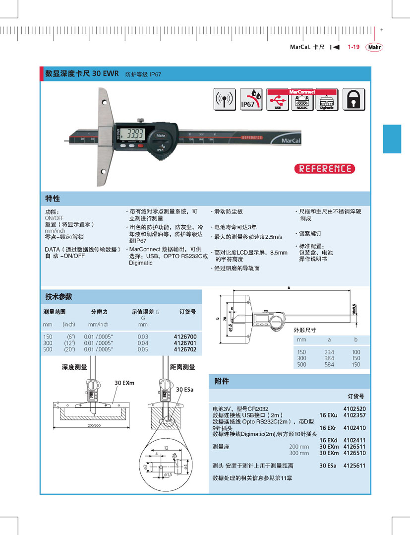 德國(guó)馬爾數(shù)顯深度尺30EWR,4126700