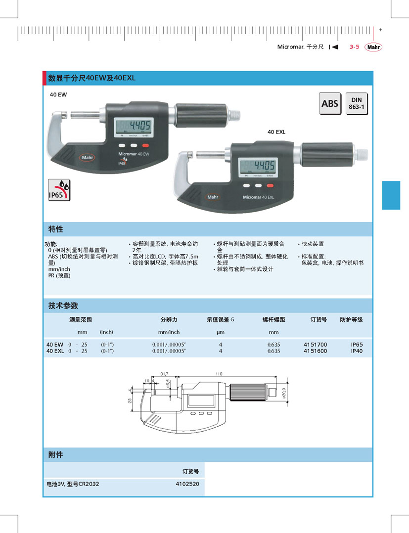 德國馬爾數(shù)顯千分尺40EW,4151700