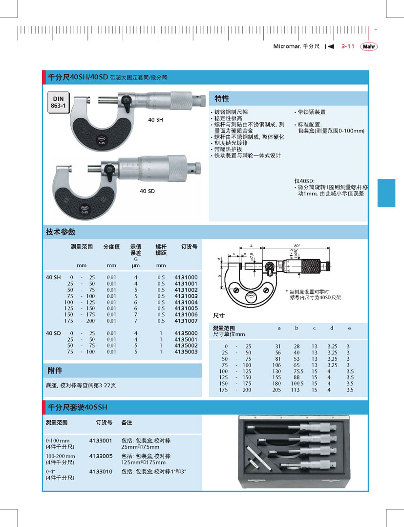 德國馬爾機(jī)械式千分尺40SH,4131001