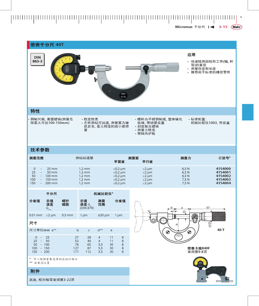德國馬爾帶表千分尺40T,4154000