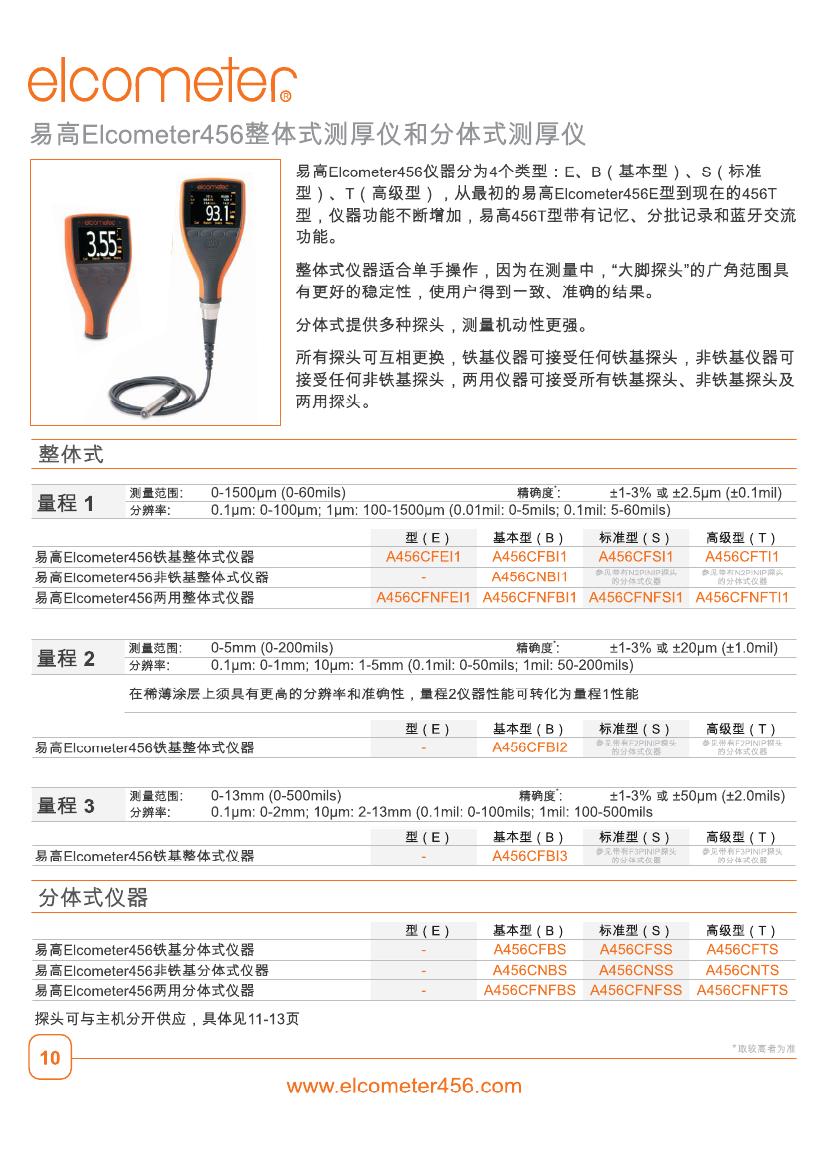 英國(guó)易高Elcometer456涂層測(cè)厚儀分為4個(gè)類型:E型、B(基本型)、S(標(biāo)準(zhǔn)型)、T(高級(jí)型),從最初的易高456E型到現(xiàn)在的456T型,儀器功能不斷增加,易高456T型帶有記憶、字母數(shù)字組合記錄數(shù)據(jù)批次和藍(lán)牙傳輸功能。