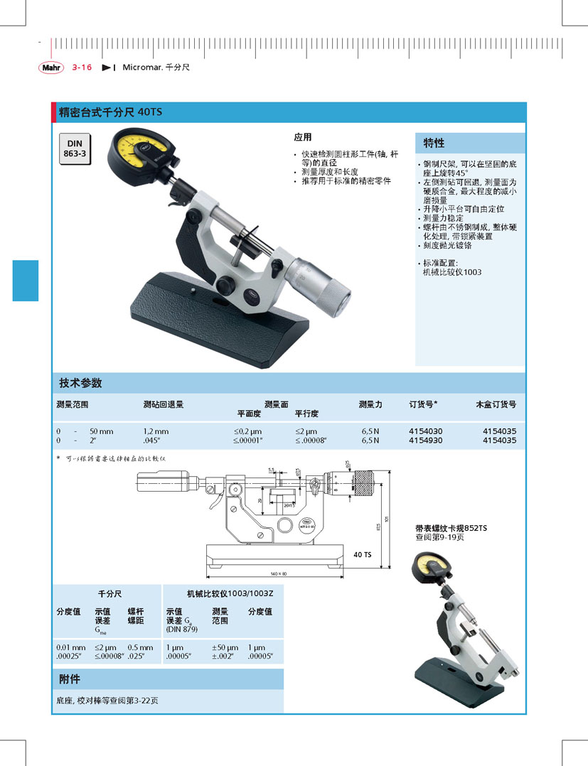 德國(guó)馬爾精密臺(tái)式千分尺40TS